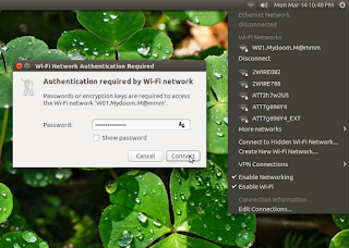 Voila! Driver loaded, now use the Network manager applet to select and connect to your network (see pic below):
